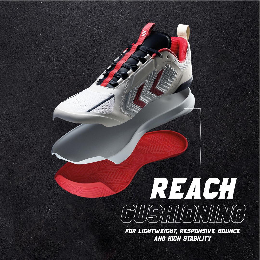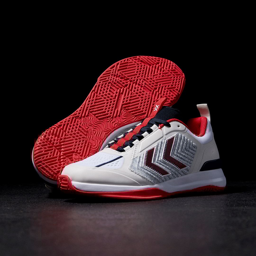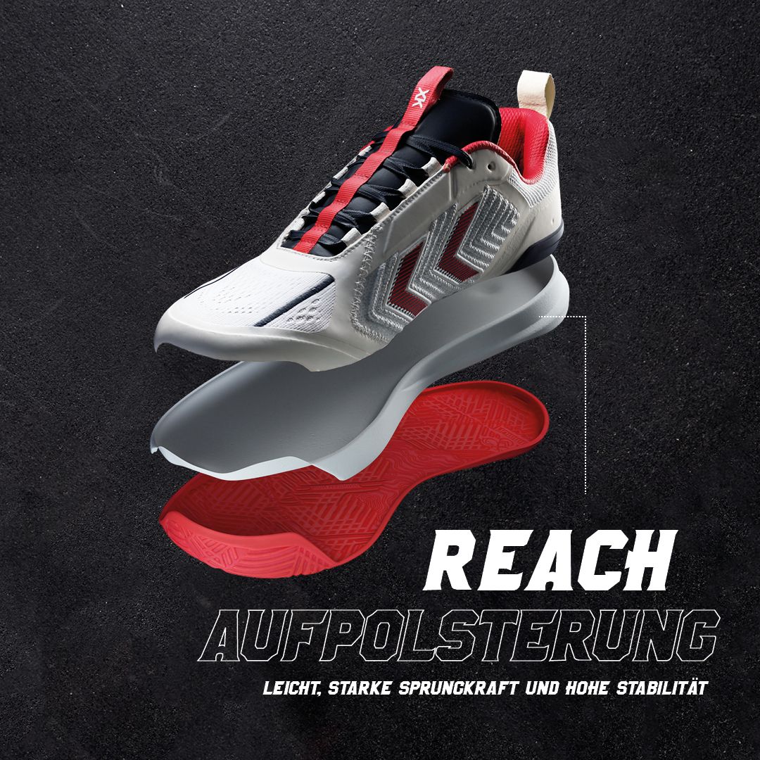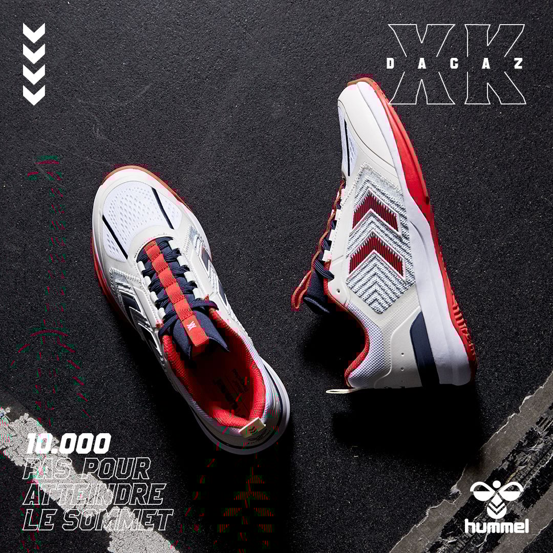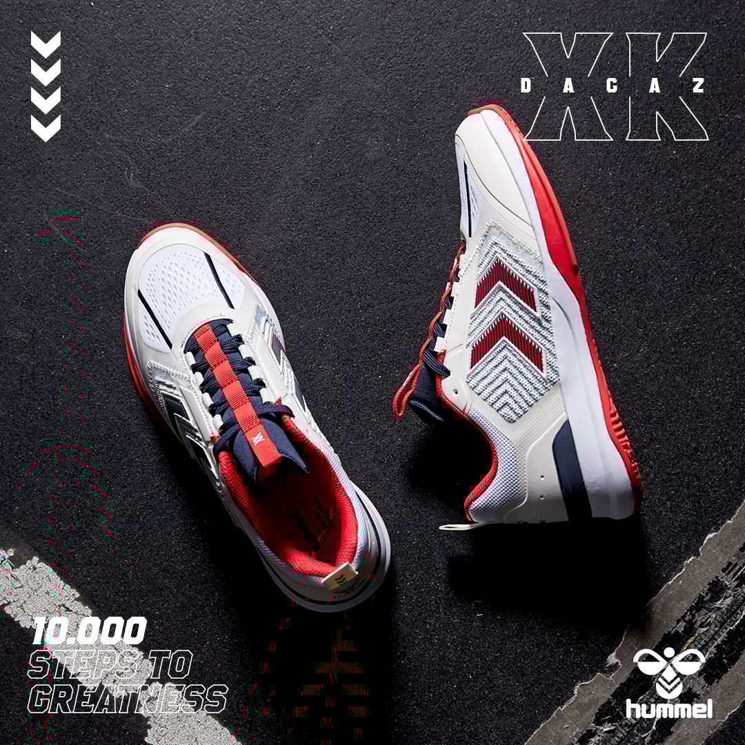 DAGAZ er konstruert med et teknisk strikket overdel og signatur chevroner i TPU, som skaper en høy grad av støtte sammen med forbedret pusteevne. Denne prestasjonsskoen har en prestasjons-tunge for økt komfort og en tilpassbar passform. På innsiden gir hummel® Reach demping lettvektig, responsiv sprett og høy stabilitet, mens hælstabilisatoren kontrollerer ankeldynamikk og hælstøtte. En Ortholite® resirkulert innersåle er også inkludert for ekstra komfort og holdbarhet. Yttersålen på denne hummel® prestasjonsskoen har et multidireksjonalt grep, samt sideveggforlengelser rundt forfoten som holder dempingen på plass under bakkekontakt.