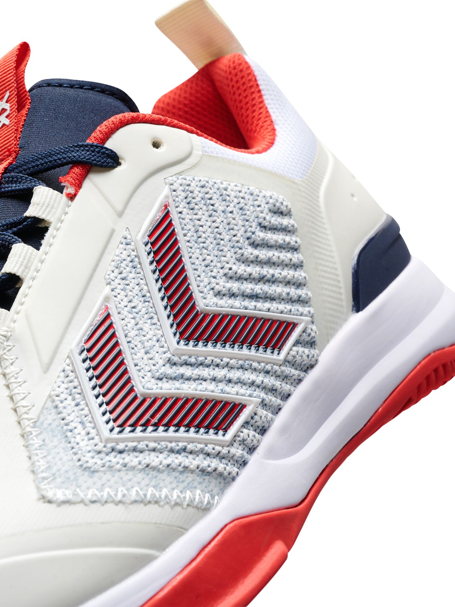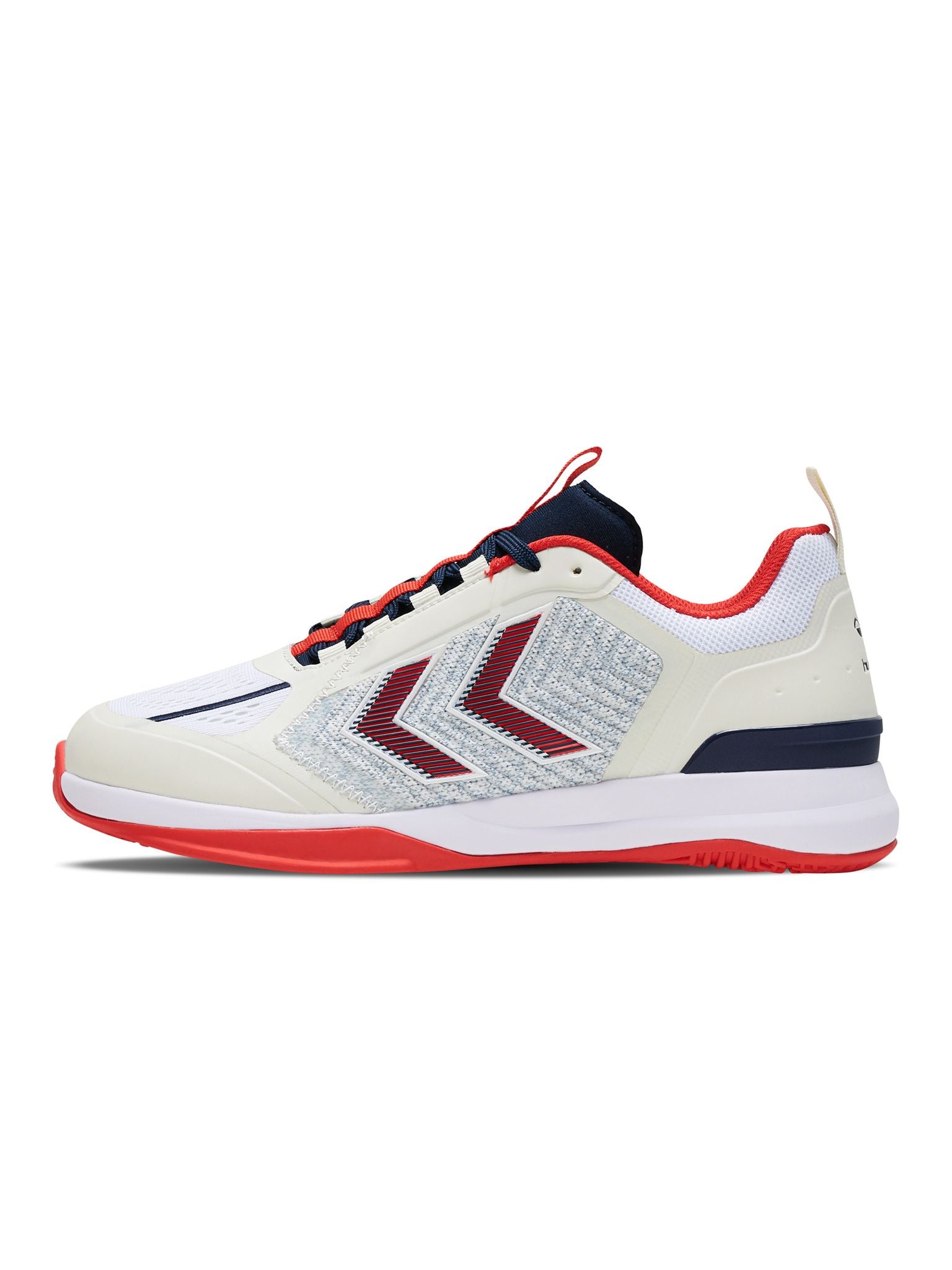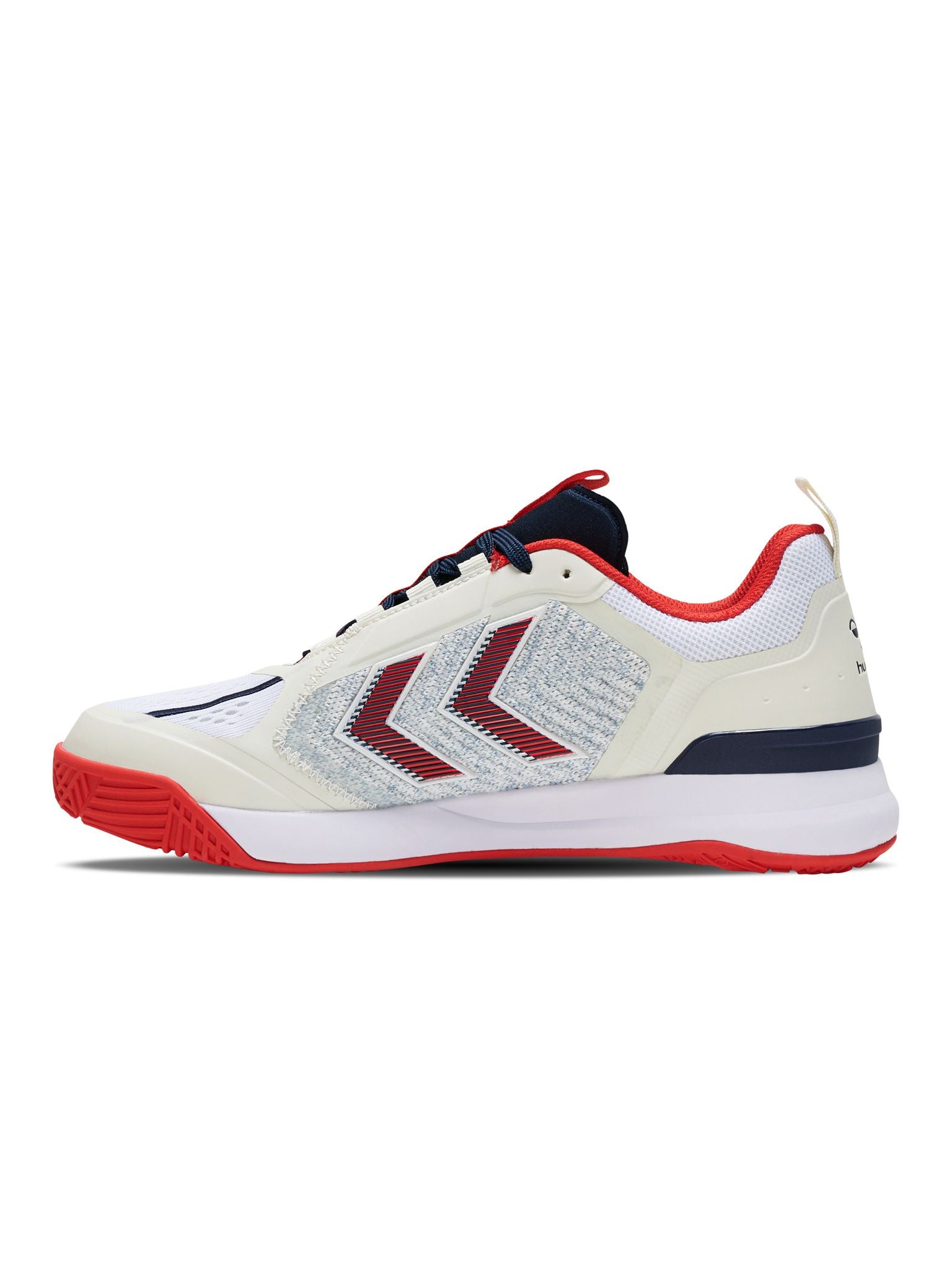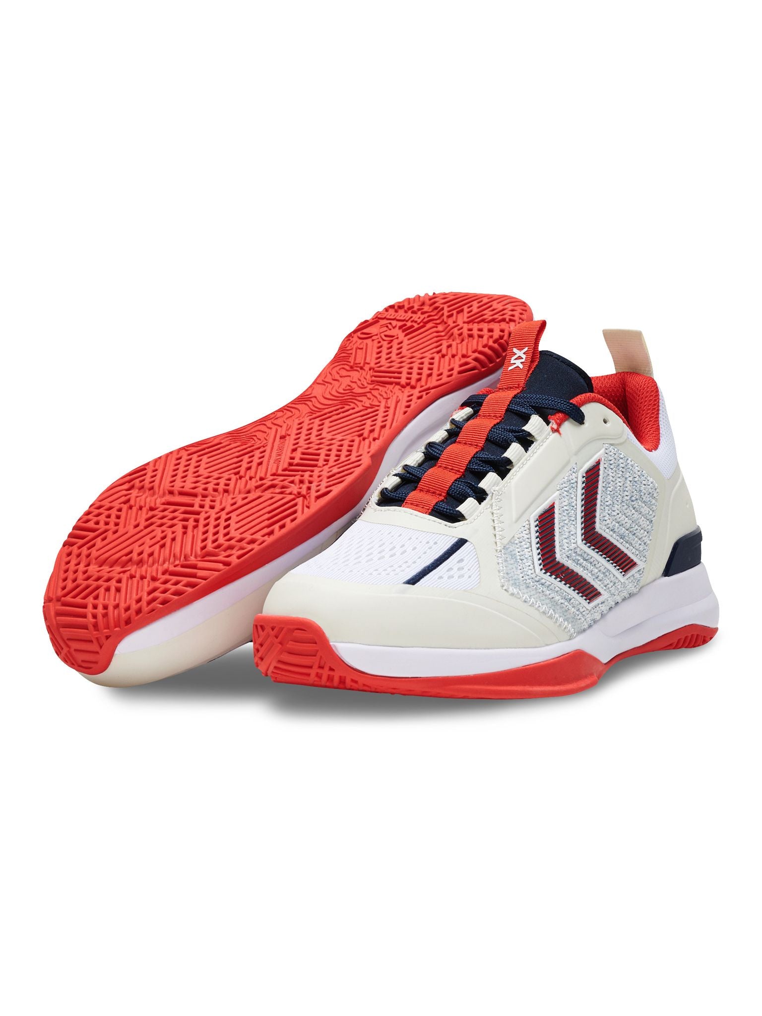 DAGAZ er konstruert med et teknisk strikket overdel og signatur chevroner i TPU, som skaper en høy grad av støtte sammen med forbedret pusteevne. Denne prestasjonsskoen har en prestasjons-tunge for økt komfort og en tilpassbar passform. På innsiden gir hummel® Reach demping lettvektig, responsiv sprett og høy stabilitet, mens hælstabilisatoren kontrollerer ankeldynamikk og hælstøtte. En Ortholite® resirkulert innersåle er også inkludert for ekstra komfort og holdbarhet. Yttersålen på denne hummel® prestasjonsskoen har et multidireksjonalt grep, samt sideveggforlengelser rundt forfoten som holder dempingen på plass under bakkekontakt.
