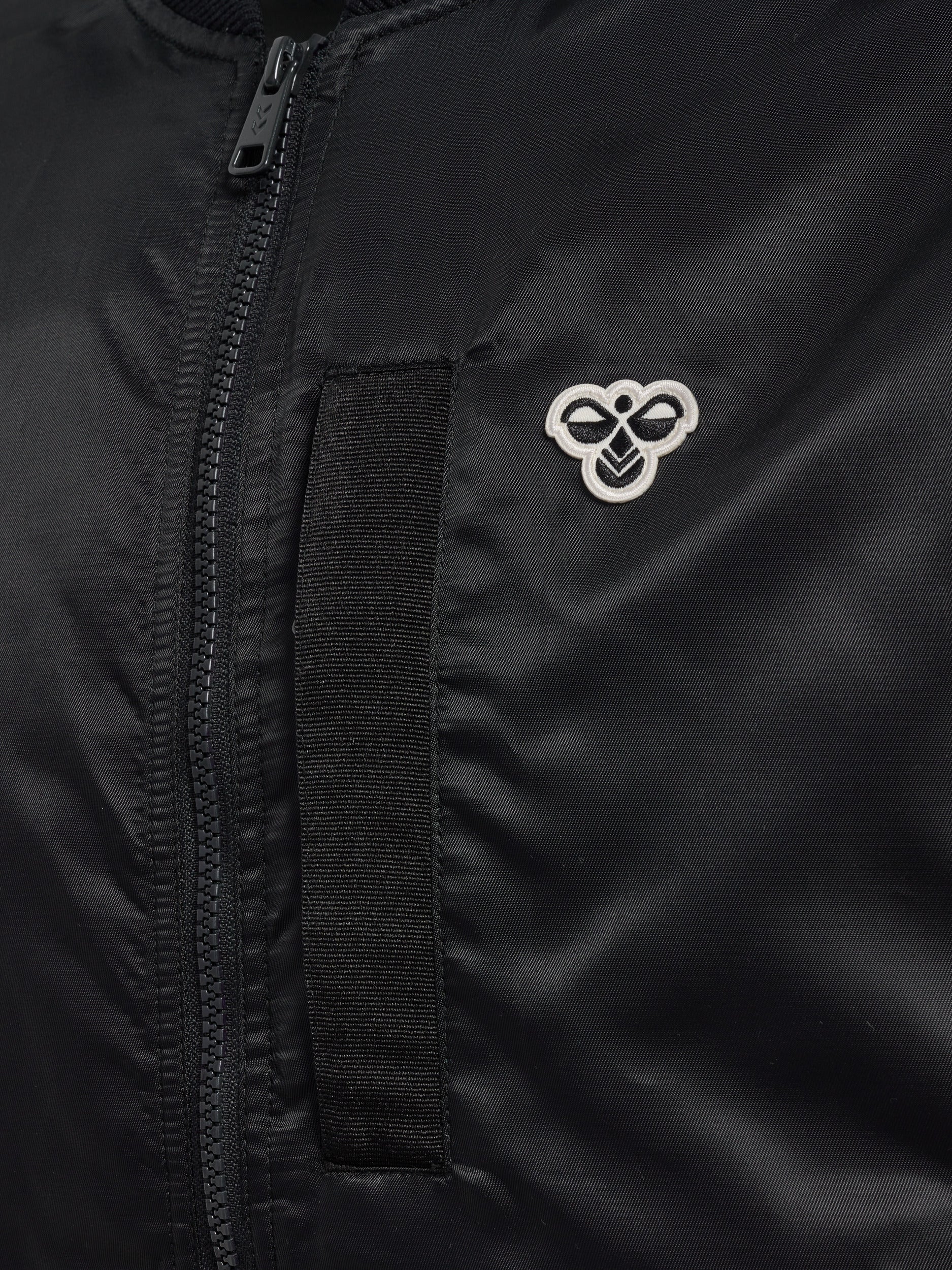 hmlBASEBALL JACKET BEE er en slitesterk og løs baseballjakke laget av vevd stoff. Jakken har en høy hals og full glidelås foran for ekstra beskyttelse mot vær og vind.