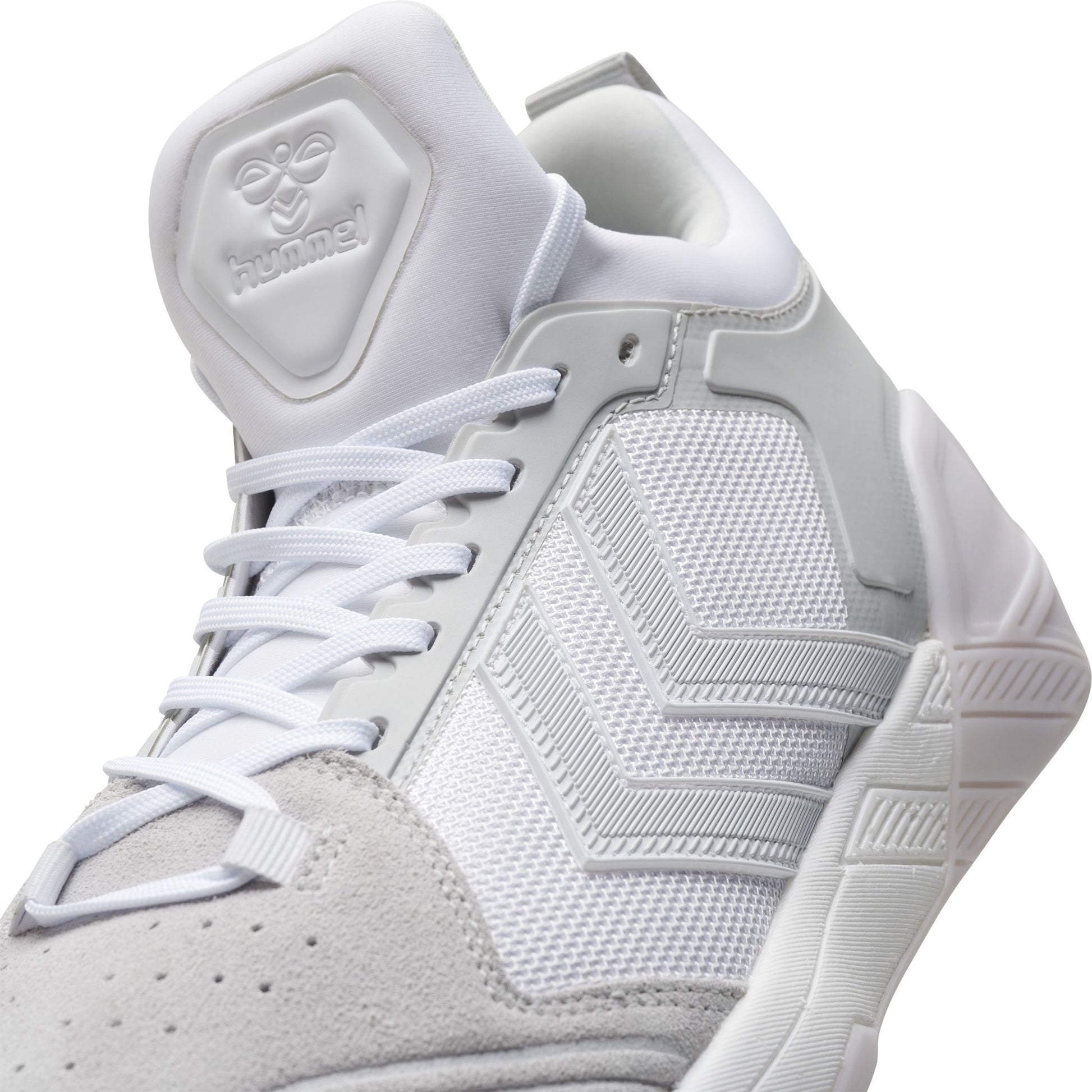 hummel ALGIZ er designet for optimal ytelse under trening innendørs. Skoen har en overdel i 100 % resirkulert mesh med kvalitetsruskinn på tåpartiet, som gir både komfort og slitestyrke. Den unike støvlekonstruksjonen og de utvidede sideveggene rundt hælen sørger for høy stabilitet og trygghet.
