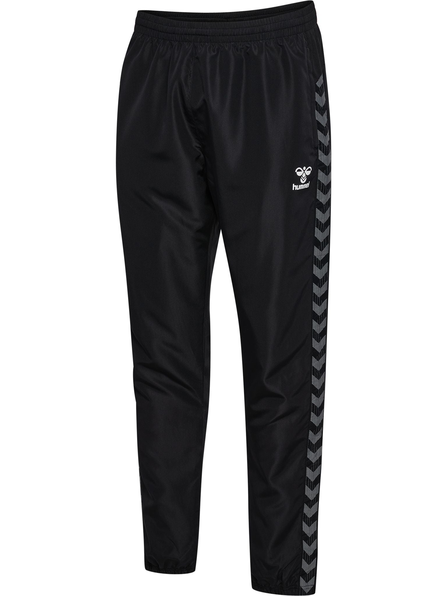 Buksene er dekorert med ikoniske hummel-vinkler og et trykt logo på benet, og kombinerer både stil og funksjon.