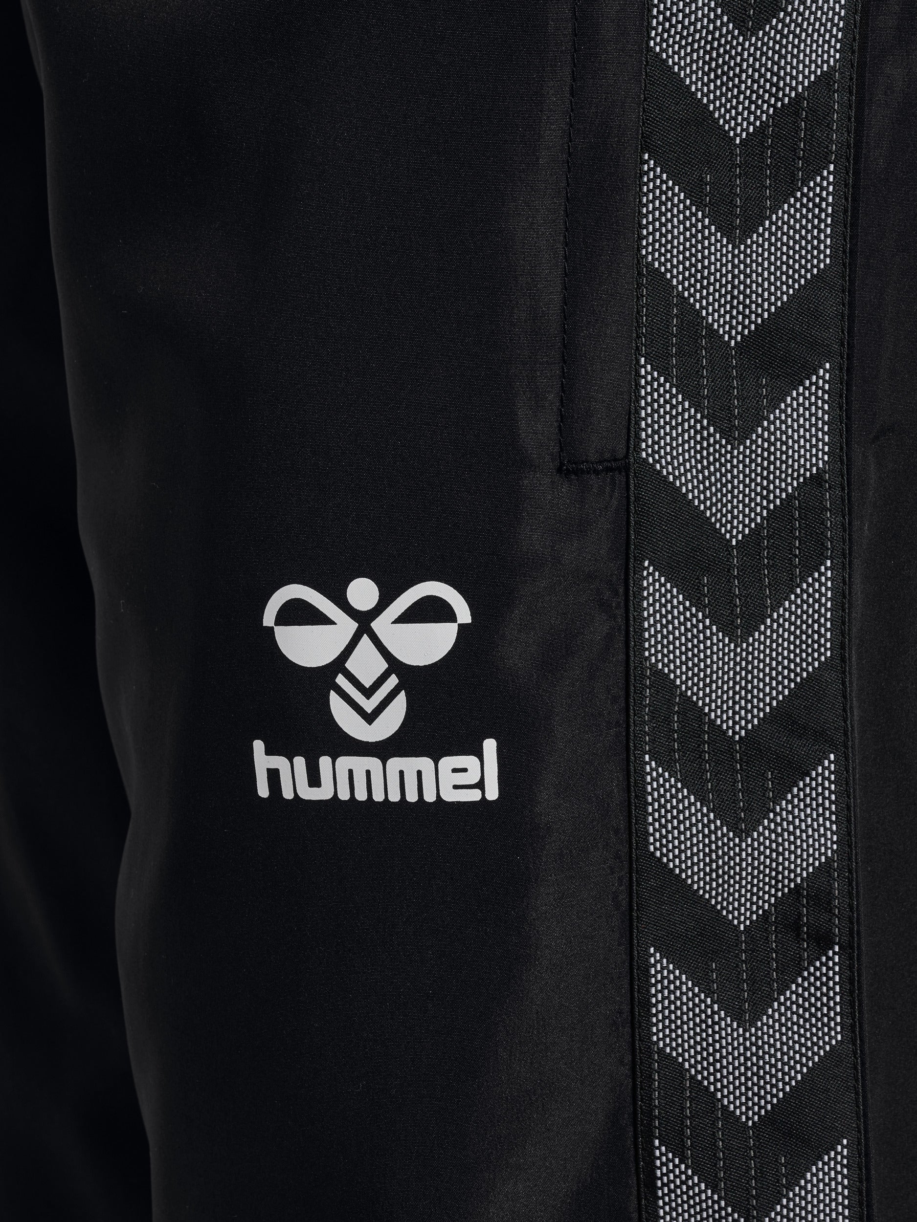 Med bærestykke i mesh og foring i taft føles buksene behagelige hele dagen. De ikoniske hummel-vinklene på sidene og printet logo gir et stilrent og sporty uttrykk.