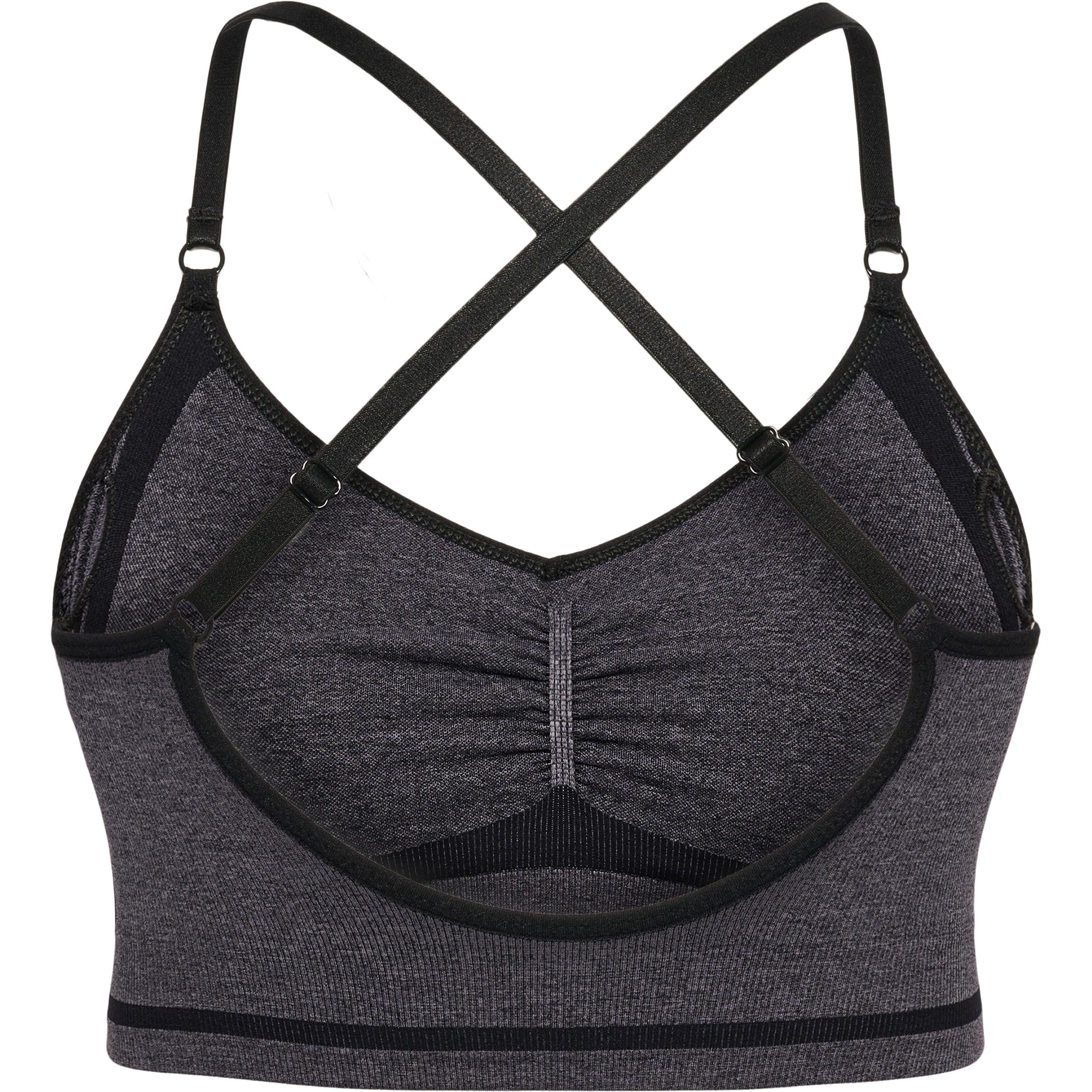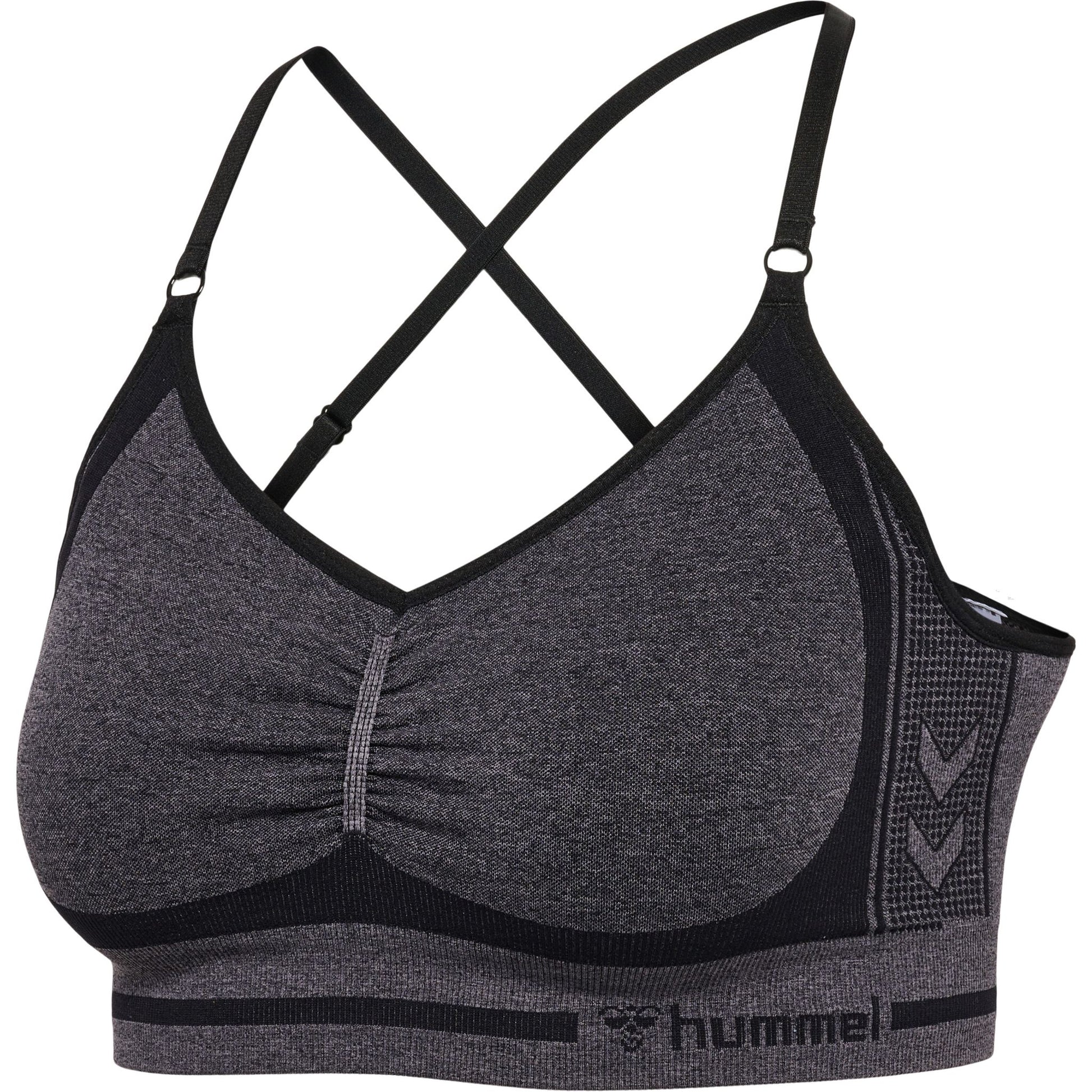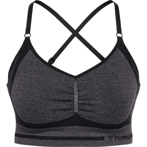 hmlMT LULU SEAMLESS SCRUNCH BRA er en sømløs bh som gir maksimal komfort og god støtte. Den har et dobbelt lag av elastisk stoff, polstring foran og en feminin rynke-effekt.