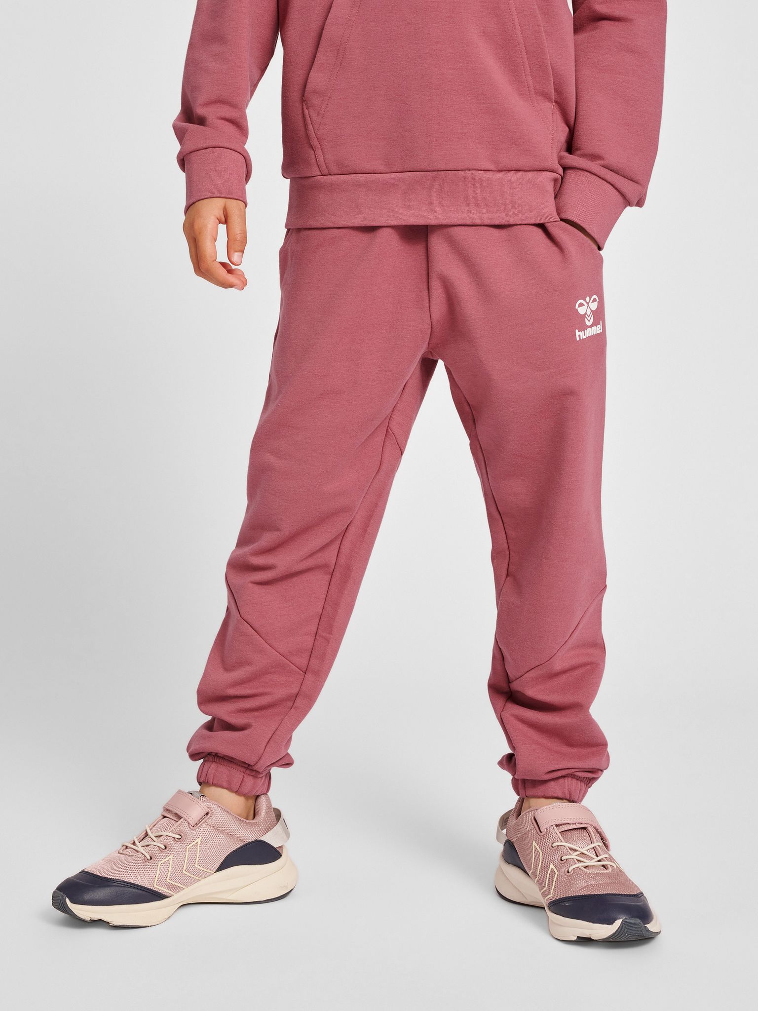 hmlNUETTE PANTS er et behagelig valg for tweens og teens som ønsker både komfort og bærekraft i garderoben. Disse joggebuksene er laget av et materiale som kombinerer økologisk bomull og resirkulert polyester, noe som gir god bevegelsesfrihet takket være litt stretch.