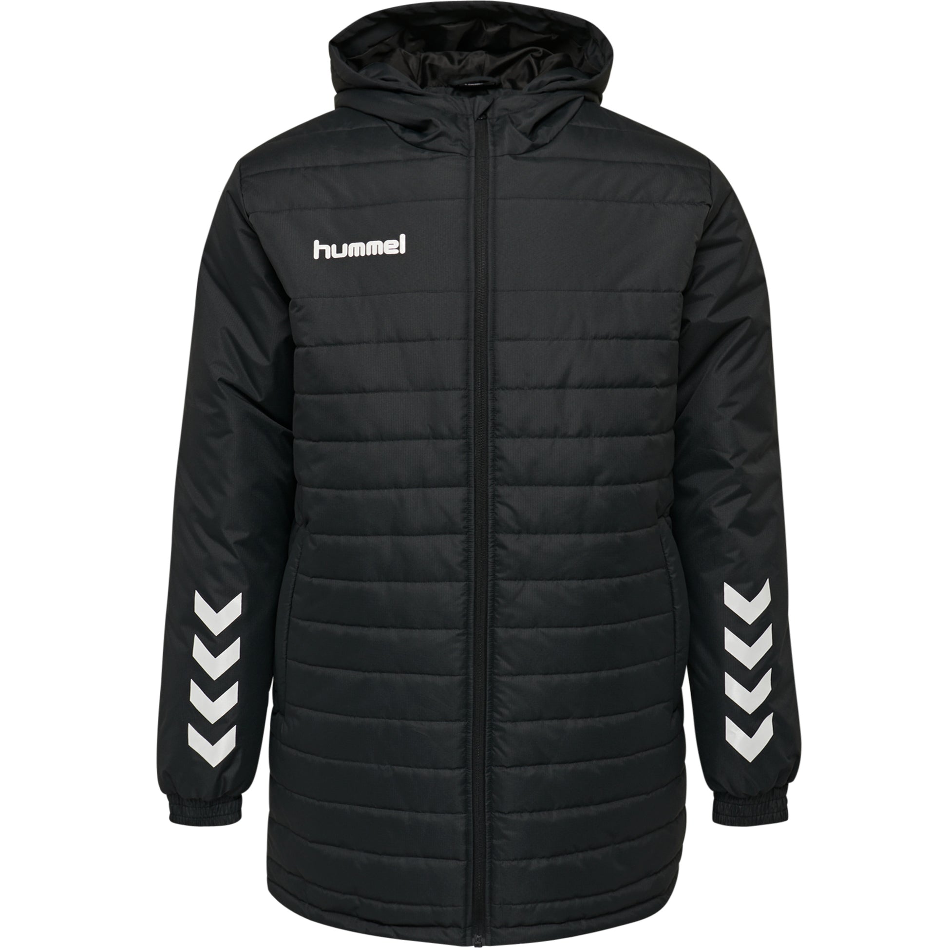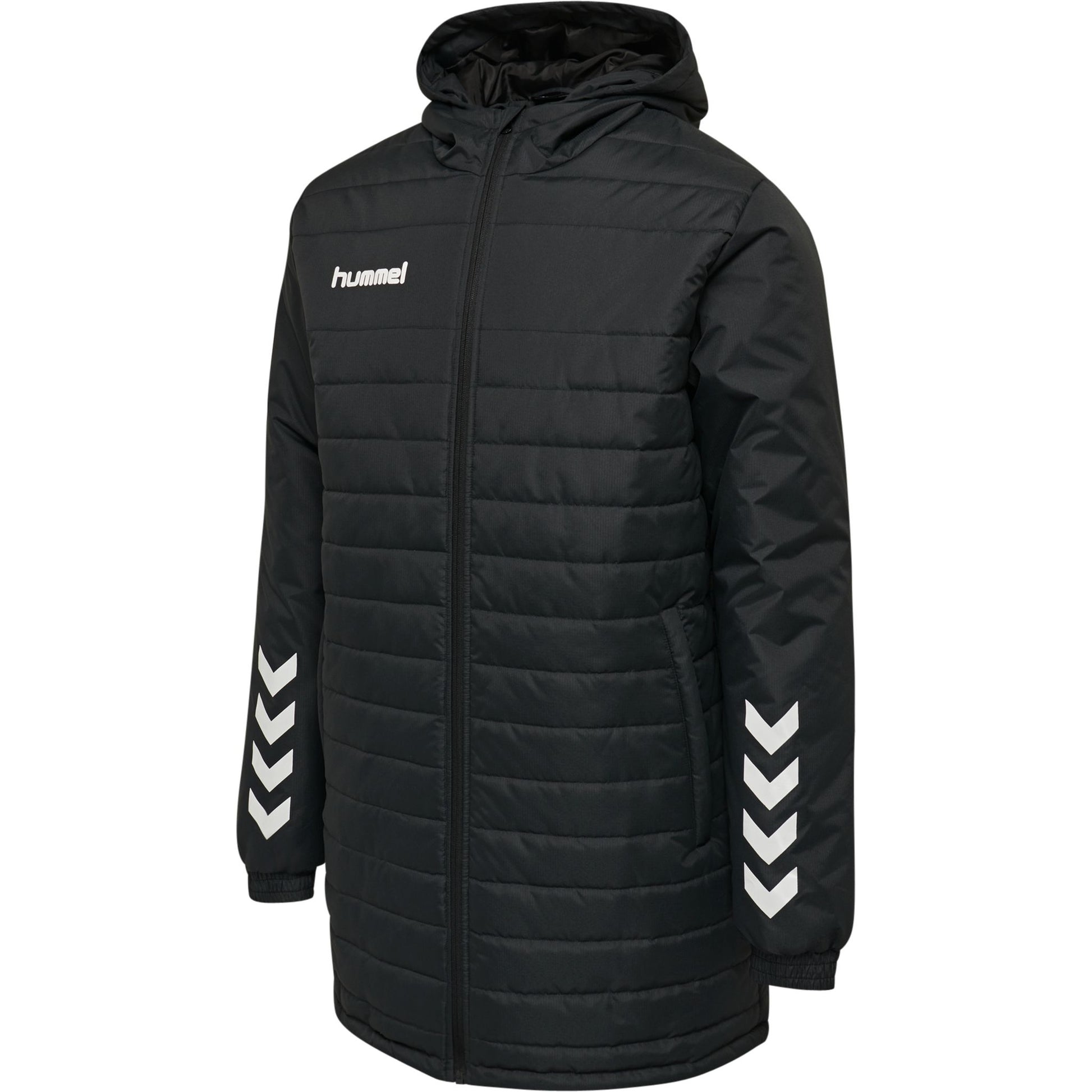 hmlPROMO KIDS BENCH JACKET er en lett og vannavvisende overgangsjakke med quiltet design, som passer perfekt over T-skjorten når aktiviteten tar en pause. Jakken har en tettsittende hette og hel glidelås foran for enkel av- og påkledning.