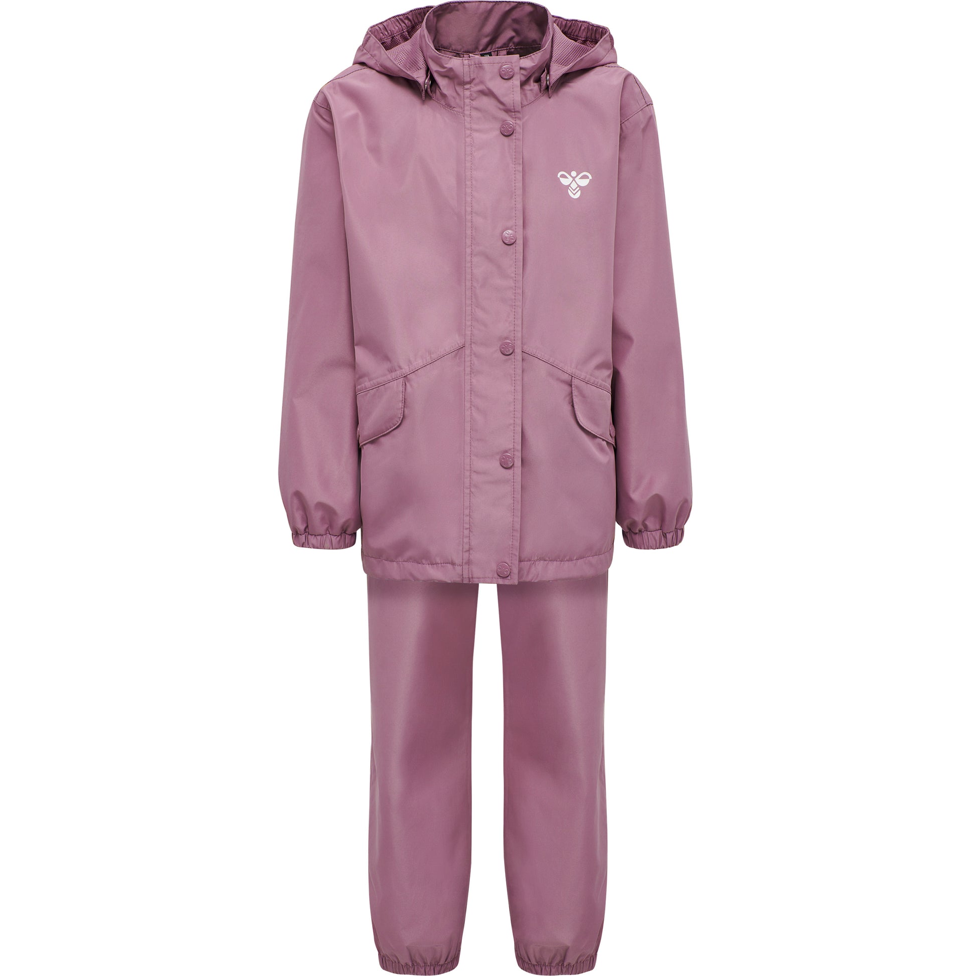 hmlREVA RAINSUIT gir tørrhet og komfort med et vannsøyletrykk på 8000 mm og takket være tapede sømmer er den helt vanntett. Denne regndressen har høy åndbarhet på 5000 mvp, refleksdetaljer for økt synlighet og en avtakbar hette – perfekt for aktive dager ute.