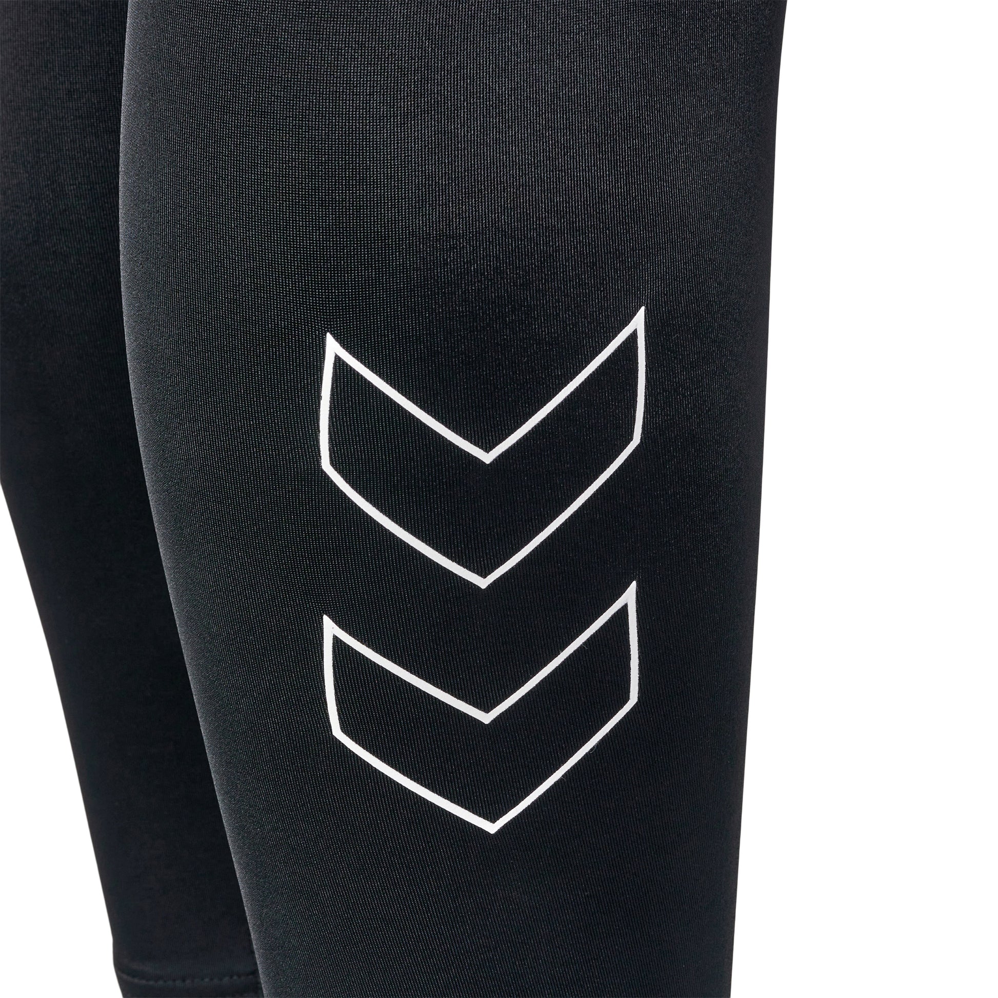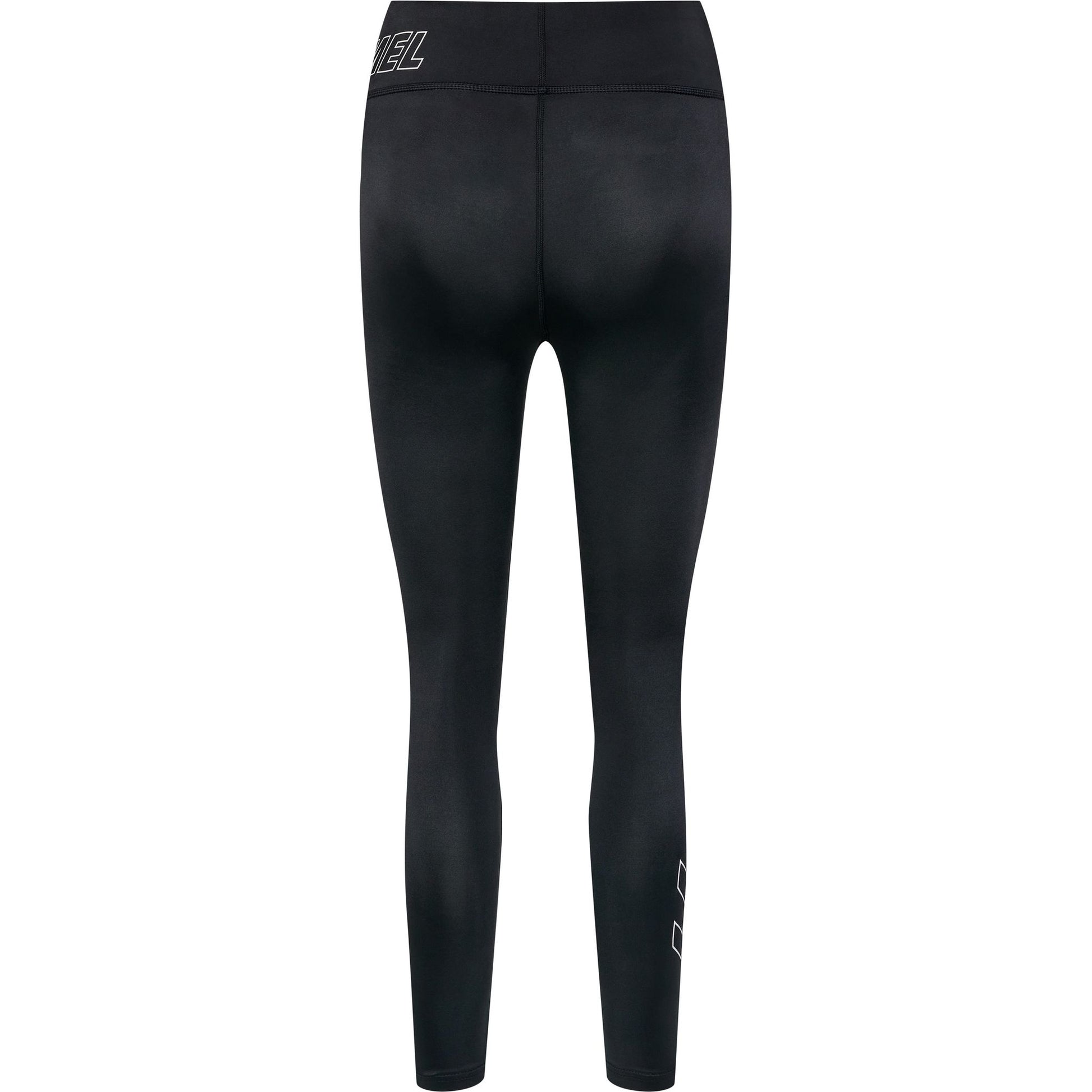 Tightsene er dekorert med et vannprintet logo og vinkler som fremhever designet.