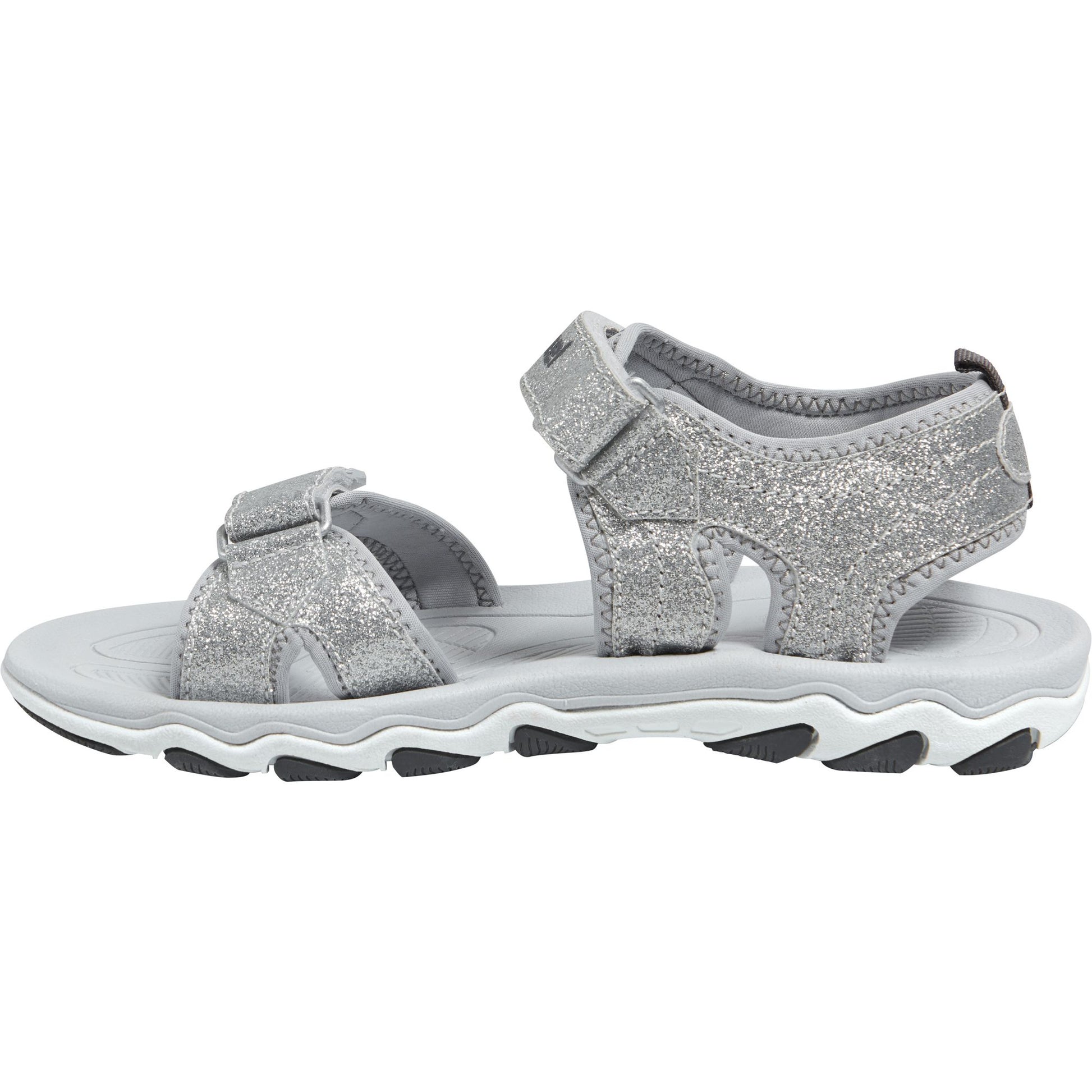 SANDAL GLITTER JR er designet for både store og små eventyrlystne jenter som elsker glimt og glitter. Denne sommersandalen har en glitrende overdel i kunstlær og neopren, og en slitesterk gummiydersål som gir godt grep.